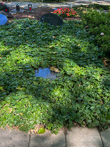 Einstelliges Erdpflegegrab mit bodenbedeckender Bepflanzung
